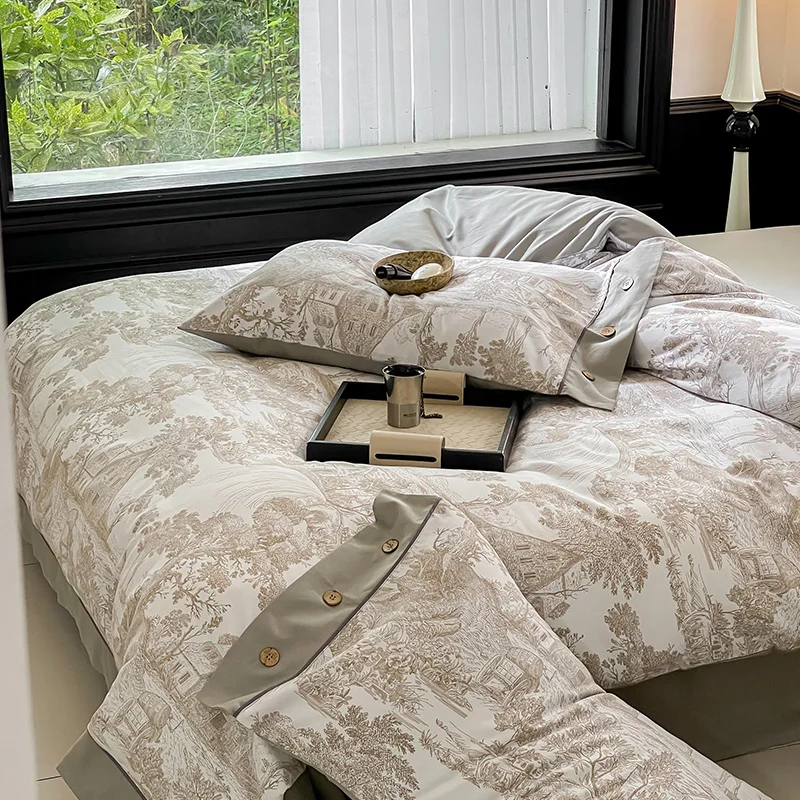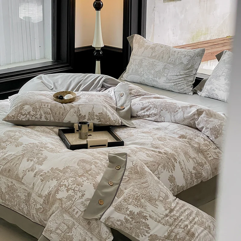 Product Description: This is a new luxury all cotton bedding set made of 100%cotton. Combined with the satin polishing process, the texture is soft, the hand feel is smooth, and the flexibility is good. adopt printing process with floral pattern,bring a quiet and elegant texture, exquisite button design, fashionable and full of artistic atmosphere, absolute high-end quality, worthy of recommendation.